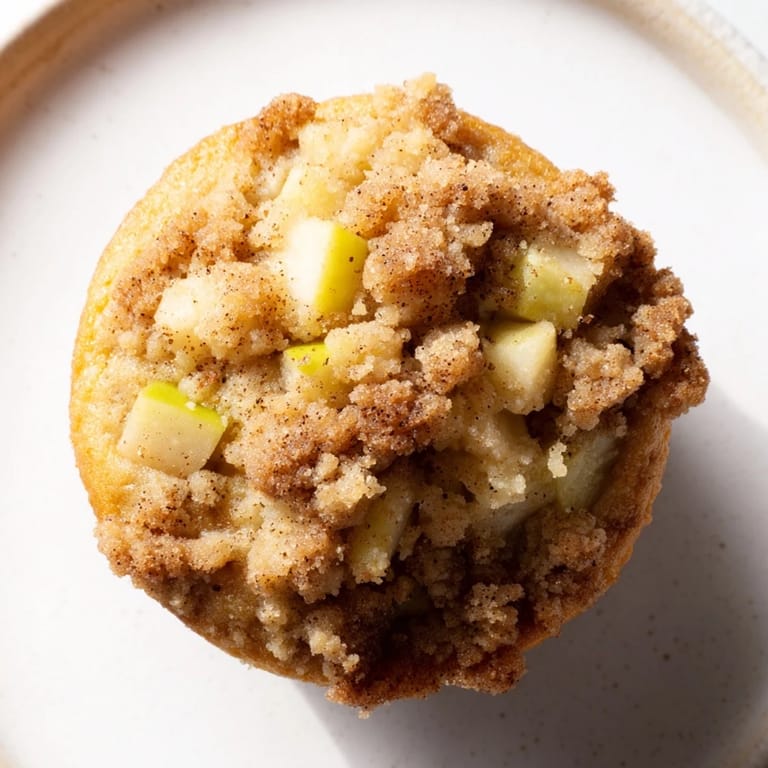 Save Moist, cinnamon-spiced apple muffins topped with a buttery crumb for the perfect breakfast or snack.