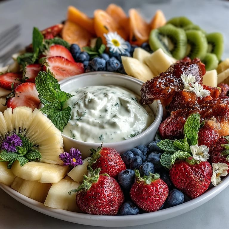 Save My sister texted me a photo of a fruit platter shaped like a blooming flower, and I knew immediately that this was the centerpiece her baby shower needed. The image stuck with me—those concentric circles of strawberries and kiwi arranged like petals around a sunny center, almost too pretty to eat. When I made it for the first time, I realized how the simple act of cutting fruit and arranging it thoughtfully transforms an ordinary snack into something that makes guests pause and smile before diving in. The honey-yogurt dip came together in under a minute, creamy and lightly sweet, cutting through the bright tartness of the berries. It became my go-to for any celebration where I wanted something that looked impressive but required zero actual cooking.