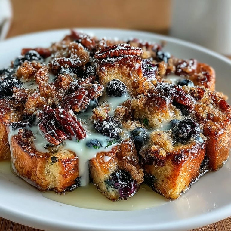 Save My mom always said the best brunches happen when you're not stressed in the kitchen, and this baked blueberry French toast taught me exactly what she meant. Years ago, I attempted a stovetop version for Mother's Day, flipping toast one piece at a time while guests arrived, swearing softly over a hot pan. Now I make this casserole instead, and everything changes—the house smells like vanilla and cinnamon before anyone wakes up, the bread soaks overnight into pure comfort, and I actually get to sit down with a cup of coffee before serving. It's the kind of dish that feels fancy but asks almost nothing of you, which might be the greatest gift you can give yourself on a morning meant to celebrate the people you love.
