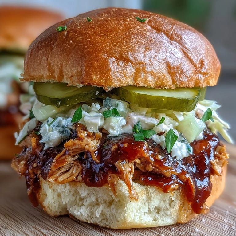 Save My cousin texted me at noon asking if I could bring something to her baby shower that afternoon. I had chicken thawing on the counter and about two hours to work with, so I threw together these pulled chicken sliders—tangy, tender, and somehow impressive enough that three people asked for the recipe before dessert was served. There's something about feeding a crowd with something this simple that feels like a small victory in the kitchen.