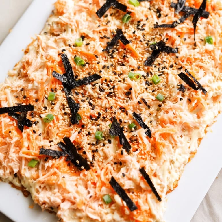 Save I stumbled onto sushi bake on a rainy Thursday when I had leftover salmon and zero patience for rolling individual pieces. The idea of layering everything into one warm, bubbly casserole felt almost rebellious, like breaking sushi rules in the best possible way. My kitchen smelled like toasted sesame and melted cheese within minutes, and I knew I'd found something special. When I pulled it from the oven, golden and crackling at the edges, I scooped a bite with a sheet of nori and understood why this dish has taken over potlucks everywhere. It's sushi without the fuss, and somehow even more comforting.