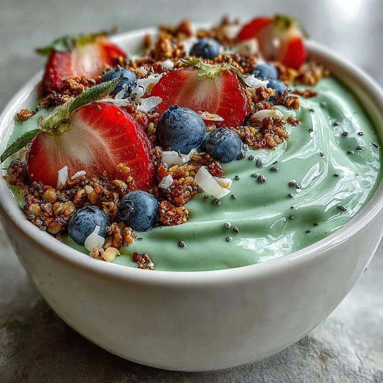 Save There is something quietly magical about a bowl of vivid green smoothie, crowned with jewel-bright berries and a dusting of golden granola, waiting for you on a slow morning. The Fluffy Yogurt Matcha Latte Smoothie Bowl is exactly that kind of recipe — one that feels indulgent yet is genuinely nourishing, one that looks like it took hours but comes together in just ten minutes. Matcha brings its signature earthy depth and a gentle caffeine lift, while thick Greek yogurt and a frozen banana whip into a cloud-like base that holds every topping in place. Whether you treat it as a power breakfast before a busy day or a restorative afternoon snack, this bowl delivers colour, texture, and flavour in every single spoonful.
