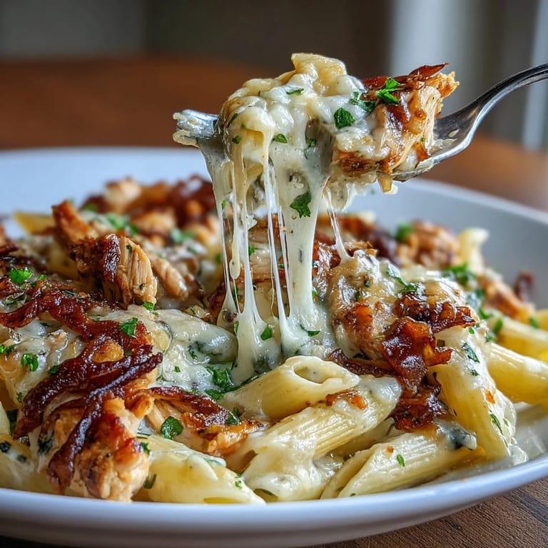 Save One-Pot French Onion Chicken Pasta brings the warmth and depth of classic French onion soup into a hearty, comforting dish. Tender chicken pieces mingle with slowly caramelized onions and a rich, flavorful broth, cooking together with pasta until perfectly tender. A blend of Gruyère, mozzarella, and Parmesan cheeses melts through the pasta, delivering a luscious, cheesy finish that feels like a warm hug on a plate.