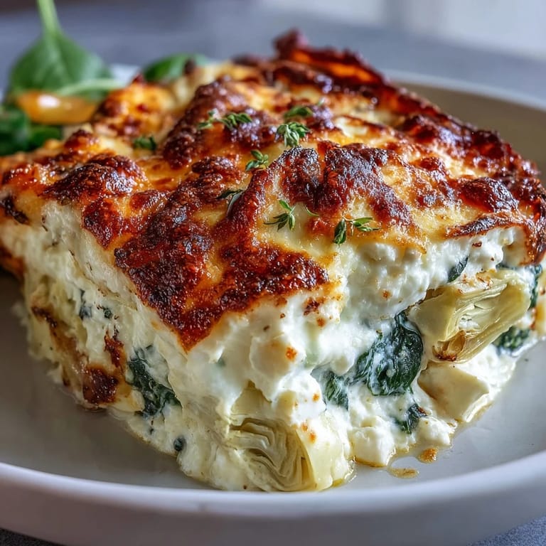Save I threw this together on a Wednesday night when my fridge was a graveyard of half-used containers and I refused to order takeout again. A tub of cottage cheese, some wilted spinach, a jar of artichokes I'd forgotten about—it didn't look promising. But I cracked a few eggs, tossed in some feta, and slid it into the oven. Thirty minutes later, the kitchen smelled like a Mediterranean café and I was eating straight from the pan with a fork.