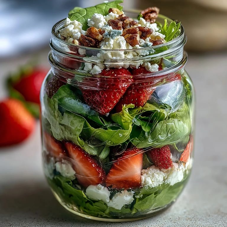 Save Last summer, I was scrambling to pack lunch for a spontaneous afternoon hike with friends, and I realized I had strawberries going soft on the counter and a block of goat cheese that needed rescuing. Instead of tossing together a sad desk salad, I grabbed some mason jars from the pantry and started layering—greens, cheese, berries, nuts—and something clicked. When we opened those jars halfway up the trail and shook them like snow globes, the dressing had already mingled with everything, and suddenly we were eating something so much fresher than we expected. These jars became my answer to every potluck, picnic, and chaotic weeknight dinner since.