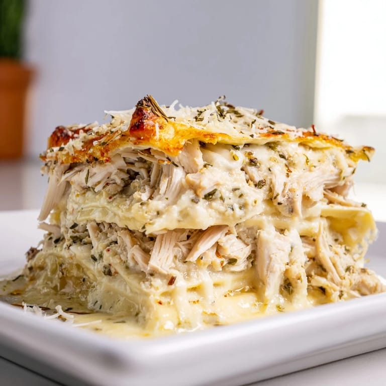 Save A savory twist on the classic Italian favorite, this lasagna layers tender chicken, creamy béchamel, mozzarella, and fresh rosemary for a comforting, fragrant meal.