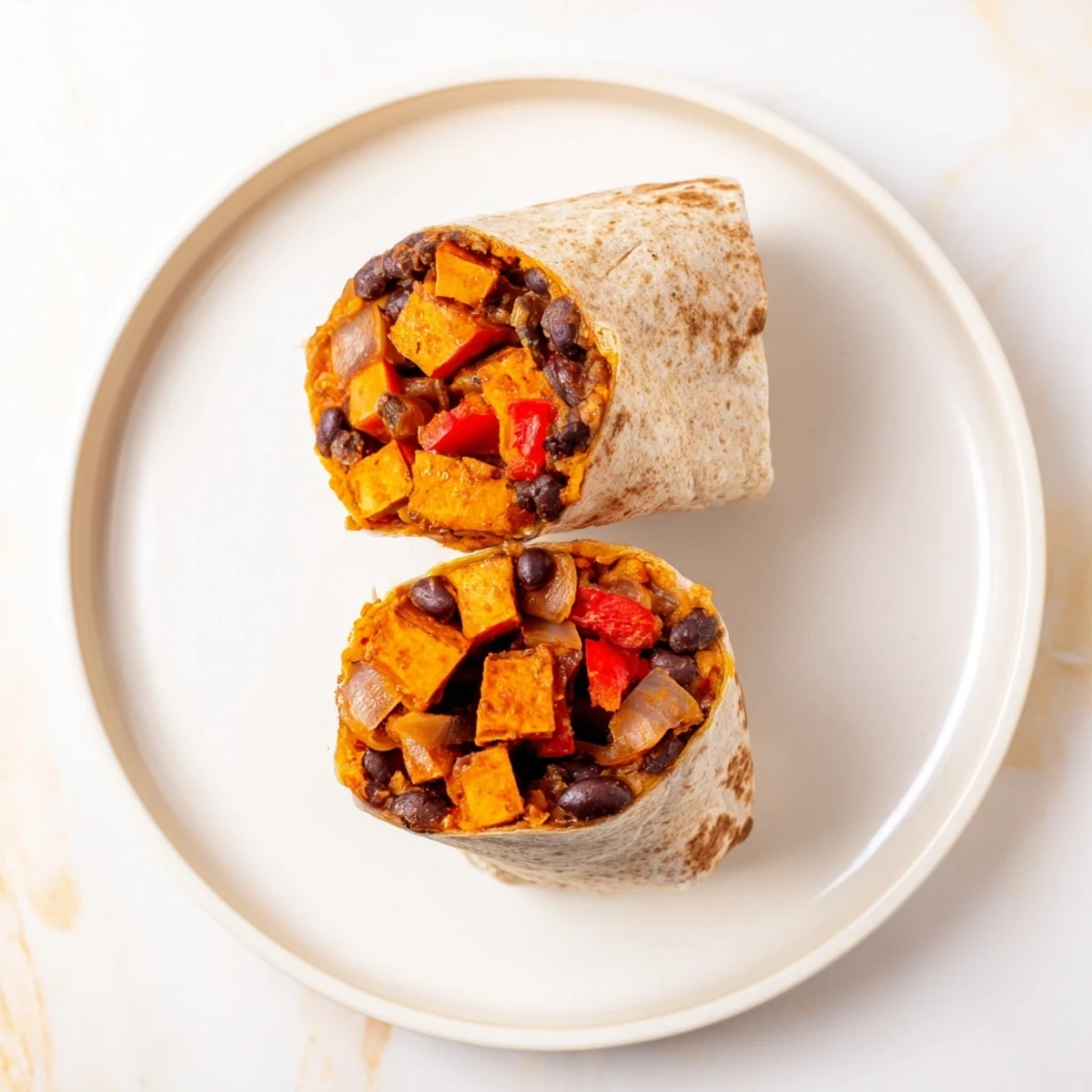 Save A hearty, flavorful vegetarian breakfast burrito packed with roasted sweet potatoes, black beans, and simple budget-friendly ingredients. Perfect for meal prep or a satisfying start to the day.